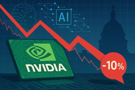 Saham Nvidia (NVDA) turun lebih dari 10% pekan ini karena kekhawatiran valuasi berlebih di sektor AI, komentar pejabat Trump, dan isu geopolitik dengan China.