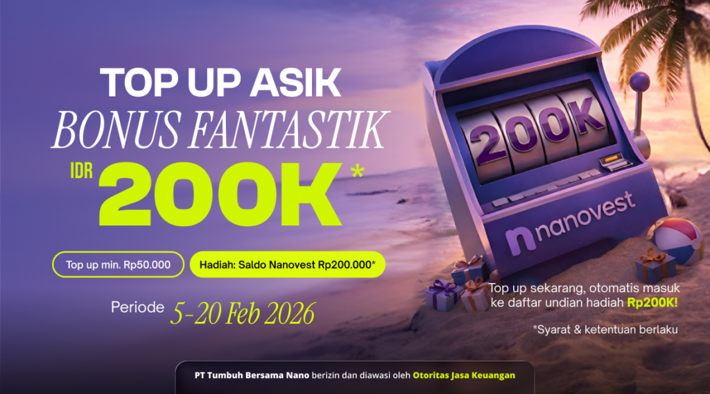 Awali Februari dengan peluang cuan ekstra bareng Nanovest! Lewat program “TOP UP ASIK, BONUS FANTASTIK 200K”, setiap pengguna terpilih yang melakukan top up minimal Rp50.000 selama periode program berkesempatan masuk undian dan meraih bonus saldo hingga Rp200.000. Tanpa ribet, semua metode pembayaran bisa ikut, baik top up Saldo Nanovest maupun Saldo Kripto. Saatnya isi saldo, maksimalkan peluang, dan biarkan top up kecilmu membuka jalan ke bonus fantastik.