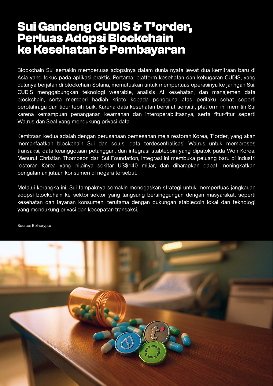 Sementara itu, aktivitas on-chain di jaringan seperti BNB Chain dan Sui juga menunjukkan pertumbuhan pesat, menandakan bahwa inovasi ekosistem kripto tetap berlanjut meski pasar tengah berada dalam fase konsolidasi.