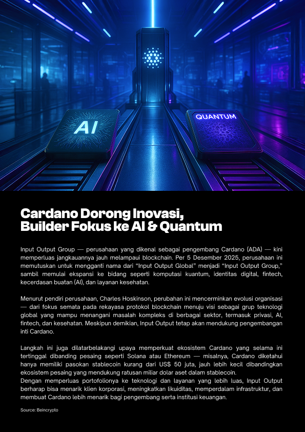 NanoWeekly Crypto kali ini merangkum gambaran utuh pasar: dari sinyal on-chain Bitcoin, dinamika ETF BTC & ETH, hingga perkembangan besar pada Cardano dan Ethereum yang berpotensi membentuk narasi kripto tahun 2026.