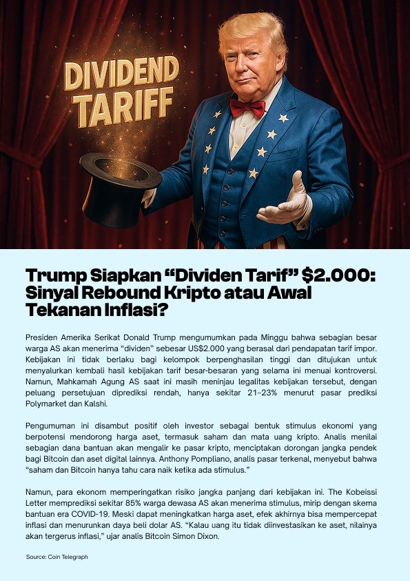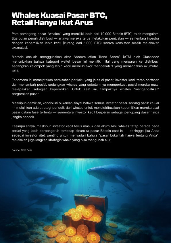 Di tengah tarik-ulur ini, perilaku whales yang terus melakukan distribusi mempertegas dominasi mereka atas dinamika pasar meninggalkan investor ritel dalam posisi reaktif. Lanskap kripto minggu ini tidak hanya dibentuk oleh arus dana ETF, tetapi juga perkembangan DeFi, katalis regulasi baru seperti potensi ETF XRP, serta sinyal makro dari kebijakan fiskal pemerintahan AS yang berpotensi mengubah arah likuiditas global.