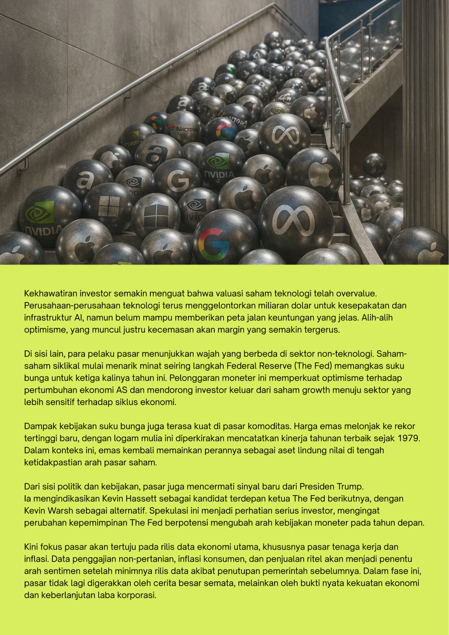 Di tengah tekanan pada saham-saham teknologi, pasar justru mengirim sinyal penting lewat penguatan indeks berbasis value dan siklikal sebuah indikasi bahwa rotasi sektor sedang berlangsung dan berpotensi menjadi tema kunci pergerakan Wall Street dalam waktu dekat.