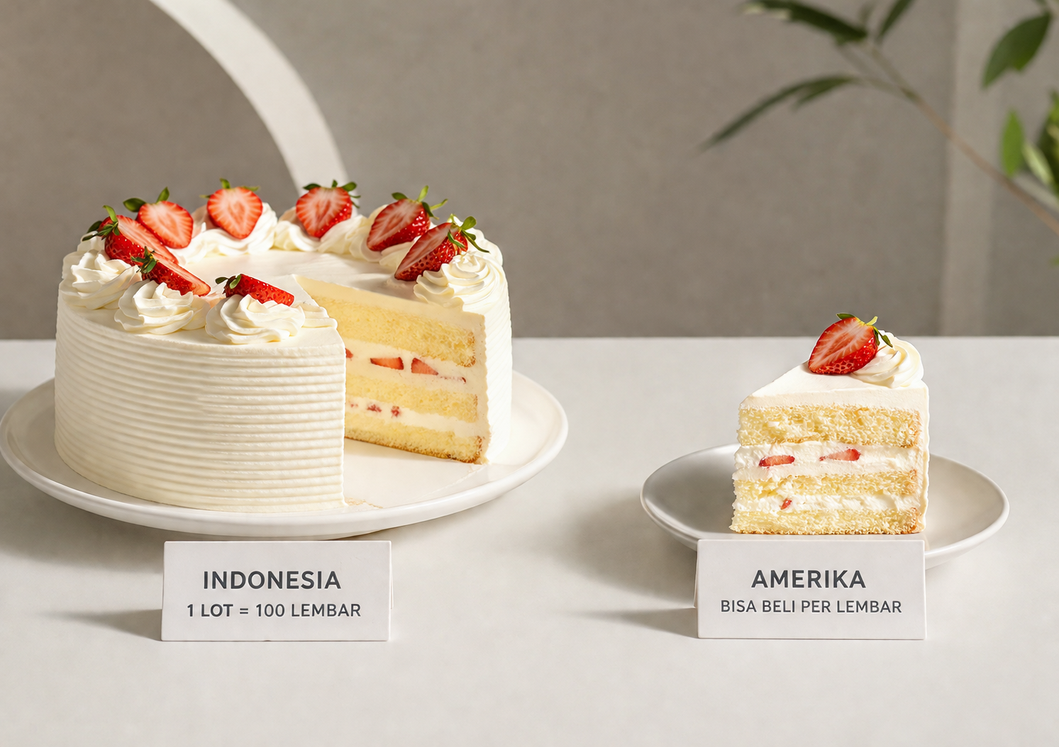| Satuan beli | 1 lot (100 lembar) | 1 lembar / fractional |